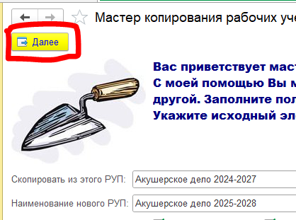 9. Нажать "Создать новый рабочий учебный план и закрыть мастер