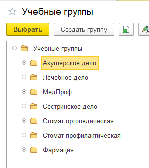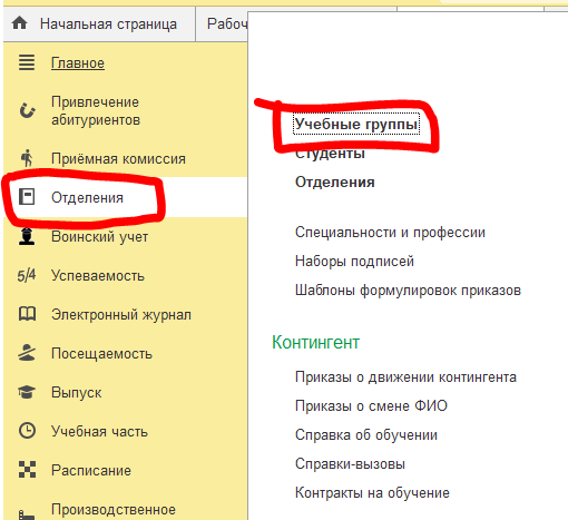 1. На вкладке "Отделения" перейти в "Учебные группы"