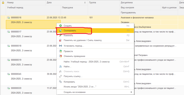 3. Правой кнопкой мыши нажимаем на основную ведомость, выбираем "Скопировать"