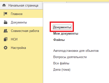 1. На вкладке "Документы" перейти в "Документы".