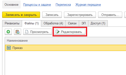 8. На вкладке "Файл" нажимаем кнопку "Редактировать".