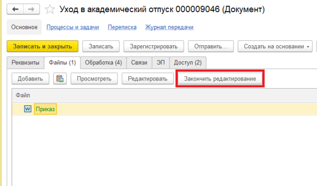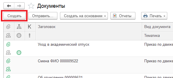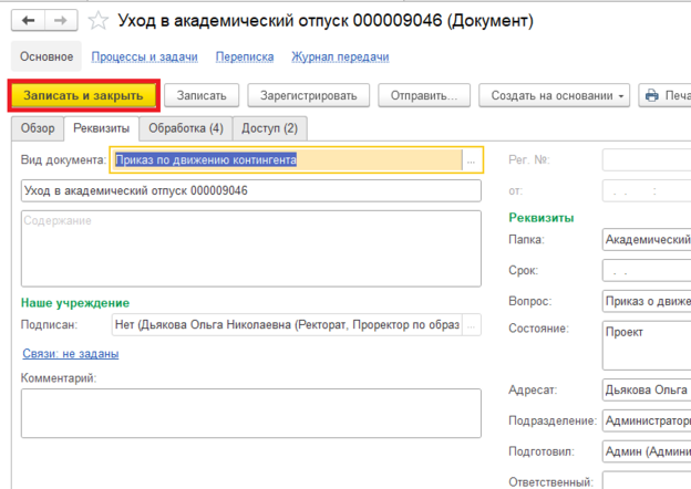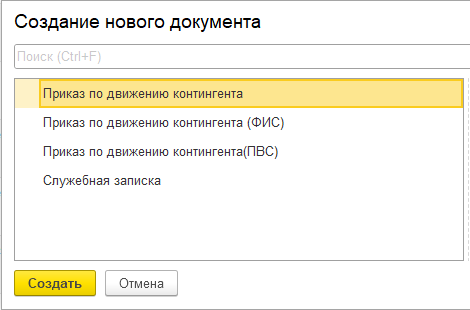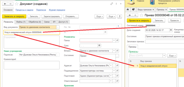 Если же приказа нет в таблице, то в "1С:Университет" его создавать не надо. Создаем его сразу в "1С:Документооборот".