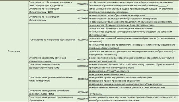 Список видов приказов и их причин