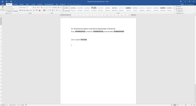 откроется окно для редактирования служебной записки, где будут уже предзаполнены поля из программы.